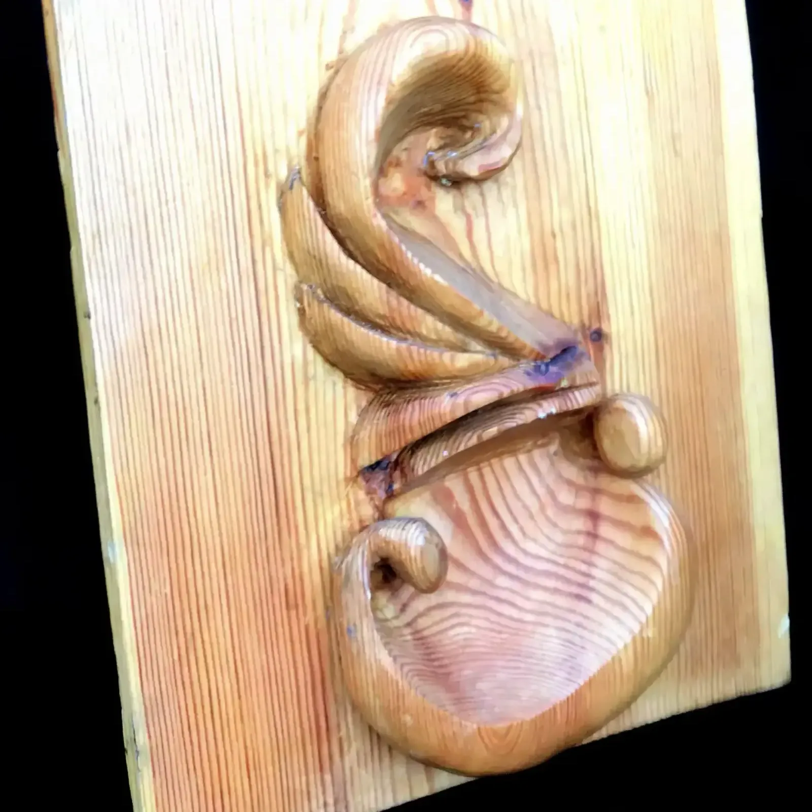 After working shifts for many years and only dabbling in carving when time and family allowed, I decided that with a change of job I would treat myself to joining a carving group and try and take the hobby up on a more serious manner. We were first guided through chip carving and then on to the first piece of proper carving of an architectural S. Bob, our tutor, encouraged us to play around with the design and see what we came up with. It depended on the wood, which was a plain old piece of well seasoned pine, on how it turned out. After working on it for a few weeks this is what I came ups with. As you can see it didn’t turn out fully according to plan(see below). Sel a Ve.