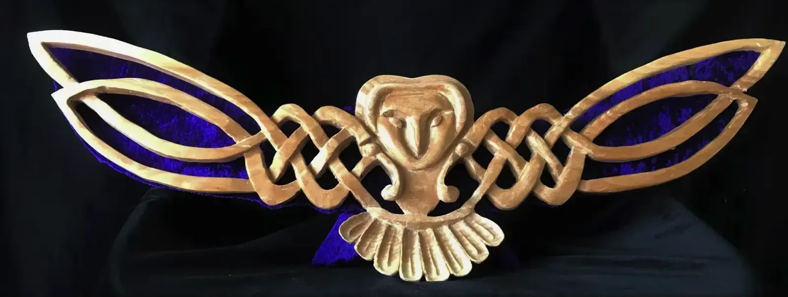 The owl is carved out of Tulipwood and the time it took to cut out the knotwork was difficult but rewarding. After a long process of sanding all the nooks and crannies, I eventually was able to polish it and finish it in danish oil. I particularly like the way the tail shows off the feathering in the grain.