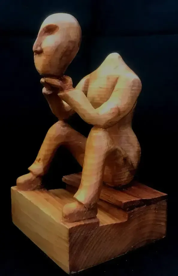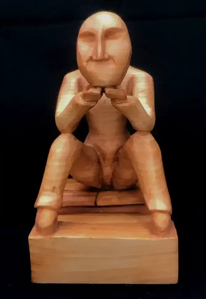 I tried to carve a bodiless figure but it broke in the first carving attempt. The second was a cross-legged version with full body and arms holding its head. The idea was this would support everything in a more sturdy way, but unfortunately, the arms broke off at the elbows and didn’t look too good when stuck back on. This was getting expensive…