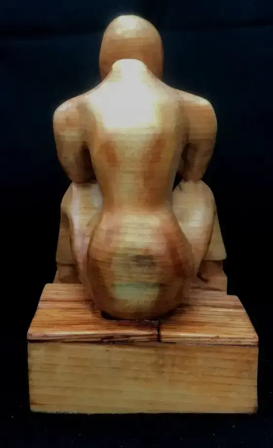 The final attempt worked because the head was supported by the piece that was cut out from between the head and the body until near the end when I had to be brave. This left only the upper body and the back of the head to shape and it was done with nervous care.