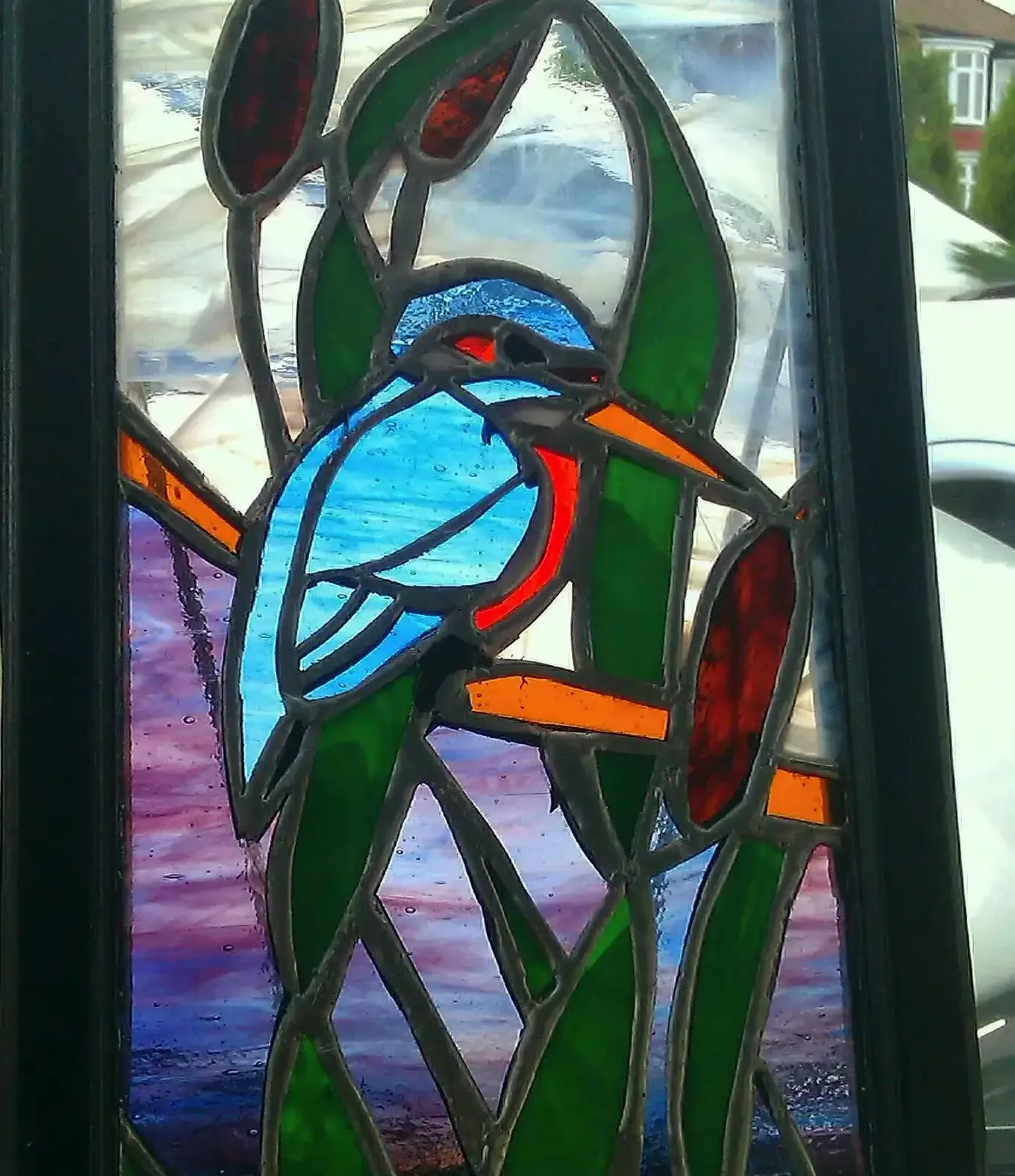 This Kingfisher was my first attempt at the hobby and I enjoyed it immensely, apart from the occasional cut to my hand and a swear word when something didn’t snap in the right place. I would continue to do pieces, as I wanted to explore using a leaded light frame, but I need a grinder as there isn’t a group meeting in the area anymore.