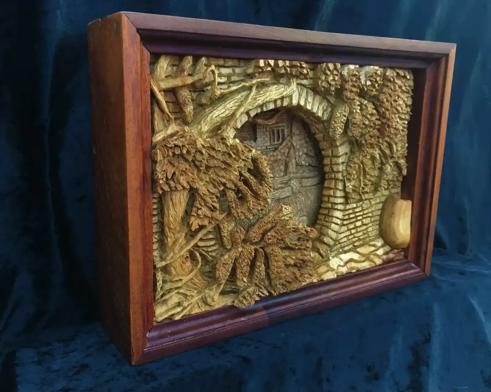 It was carved on 2 pieces of sycamore sandwiched together to give depth and framed in the mahogany frame to add contrast. The majority of the carving was a trial using a Dremel and carving bits to do most of the digging out and shaping. I have mostly done all my carving by hand, but agree that any method has value in removing the wood to get the picture you require. I am starting on bigger projects, so chainsaws are not out of the question. Beware!!!!!